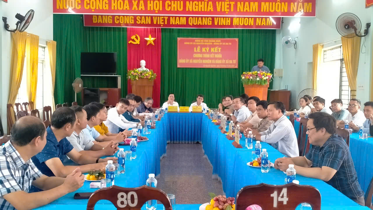 Sáng ngày 18/10/2025, được sự thống nhất của 2 địa phương, Đảng ủy Xã Nguyễn Nghiêm và Đảng ủy xã Ba Tơ tổ chức Lễ ký kết chương trình kết nghĩa về tăng cường mối quan hệ hợp tác, giao lưu, tạo bước đột phá, sáng tạo, hỗ trợ giữa các địa phương, thúc đẩy cùng nhau phát triển. Dự Lễ có đồng chí Lữ Ngọc Bình - Ủy viên Ban Thường vụ Tỉnh ủy - Trưởng Ban tổ chức Tỉnh ủy Quảng Ngãi; đồng chí Y Thị Bích Thọ - Ủy viên Ban Thường vụ Tỉnh ủy - Phó Chủ tịch Thường trực Ủy ban Mặt trận Tổ quốc Việt Nam tỉnh Quảng Ngãi. Đại diện xã Nguyễn Nghiêm có đồng chí Nguyễn Thịnh, Bí thư Đảng ủy - Chủ tịch HĐND xã; đại diện xã Ba Tơ có đồng chí Phạm Giang Nam, Bí thư Đảng ủy, Chủ tịch HĐND xã Ba Tơ; cùng các đồng chí trong Thường trực Đảng ủy; Ủy viên Ban Thường vụ Đảng ủy; Phó Chủ tịch HĐND, Phó Chủ tịch UBND; lãnh đạo các cơ quan thuộc HĐND, UBND, UBMT TQVN xã; lãnh đạo các phòng, ban của 2 xã cùng tham dự Lễ ký chương trình kết nghĩa.