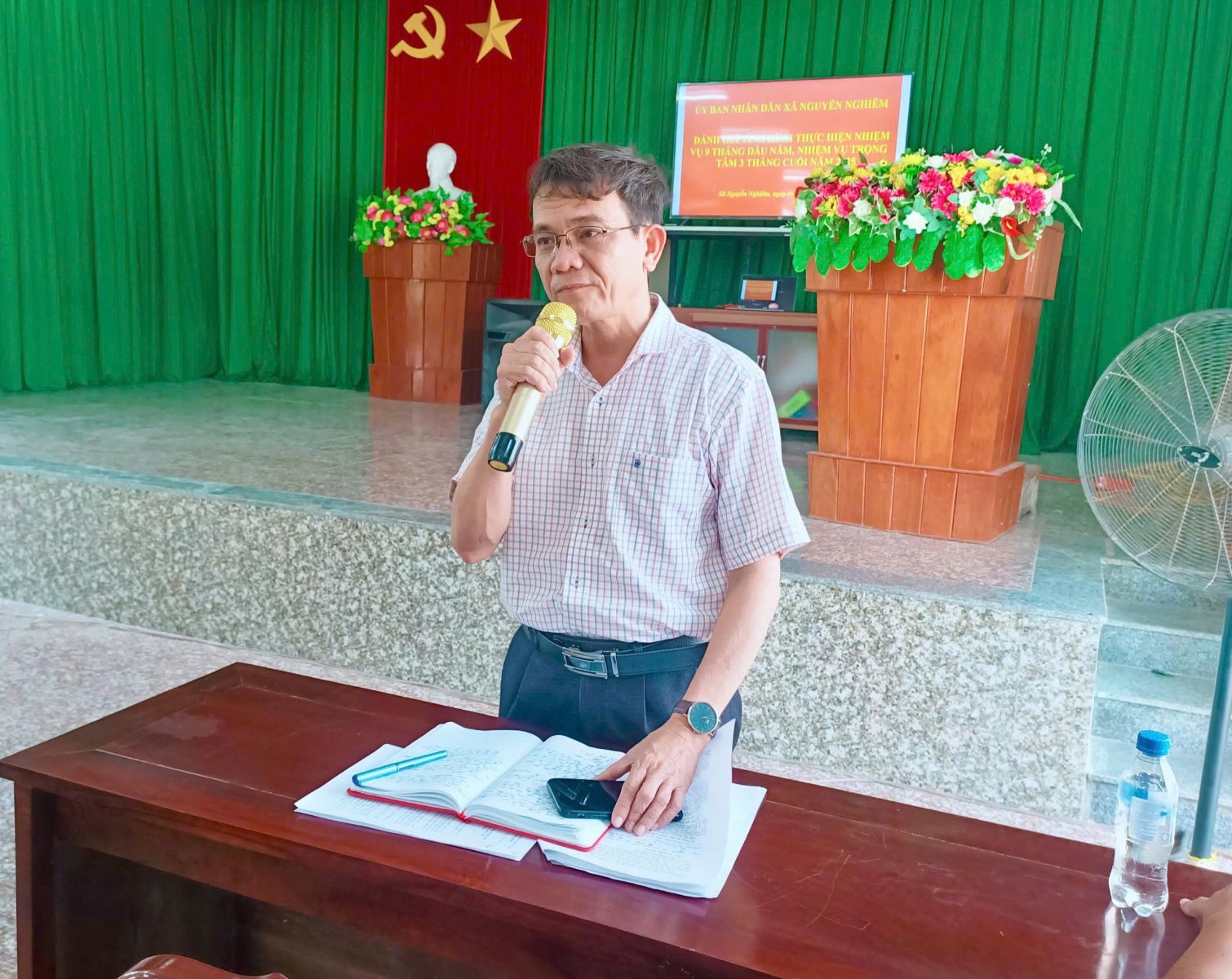 UBND Xã Nguyễn Nghiêm tổ chức cuộc họp đánh giá tình hình thực hiện nhiệm vụ 9 tháng đầu năm, triển khai nhiệm vụ 3 tháng cuối năm 2025 do đồng chí Nguyễn Trung Trực - Phó Bí thư Đảng ủy, Chủ tịch UBND xã chủ trì. Tham dự cuộc họp có đồng chí Nguyễn Thịnh - Bí thư Đảng ủy, Chủ tịch HĐND xã; đồng chí Nguyễn Tấn Mạnh, Phó Chủ tịch HĐND xã; lãnh đạo UBMTTQVN xã; các Phó Chủ tịch UBND xã; lãnh đạo Công an, Quân sự xã; lãnh các phòng, ban, Trung tâm xã; Hiệu trưởng các trường học; Trưởng Trạm y tế xã; Giám đốc các Hợp tác xã và 11 Trưởng thôn trên địa bàn xã.