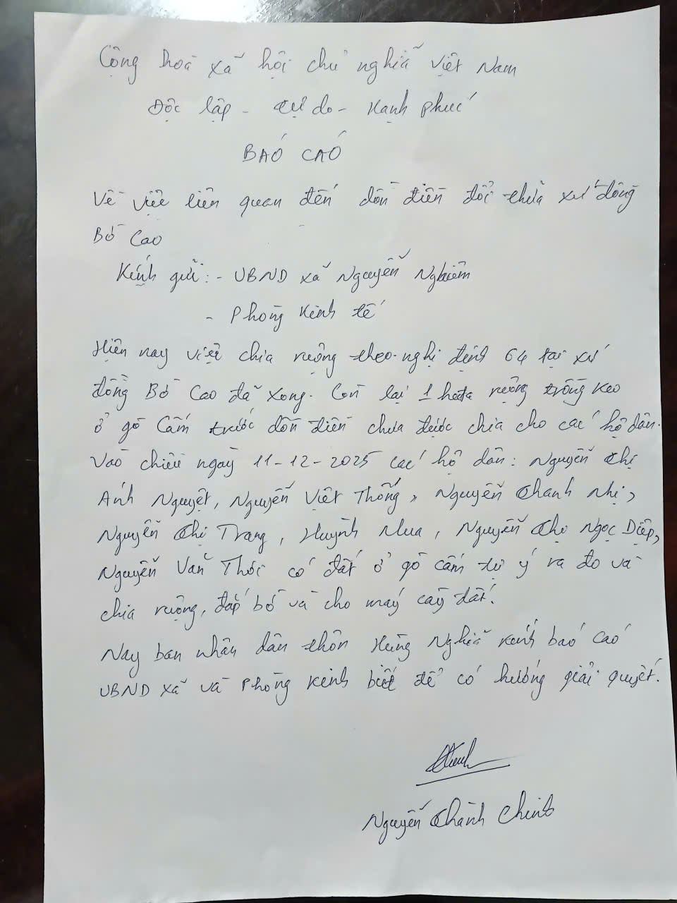 | Mô tả | Về việc giải quyết vướng mắc dồn điền đổi thửa xứ đồng bờ cao thôn Hùng Nghĩa |